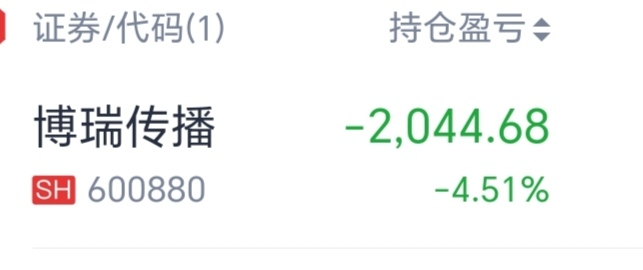 $博瑞传播(SH600880)$ 不知不觉亏4.5%,割肉离场。留下的兄弟发财。再挣回来要多少,5.68%,找补吧。