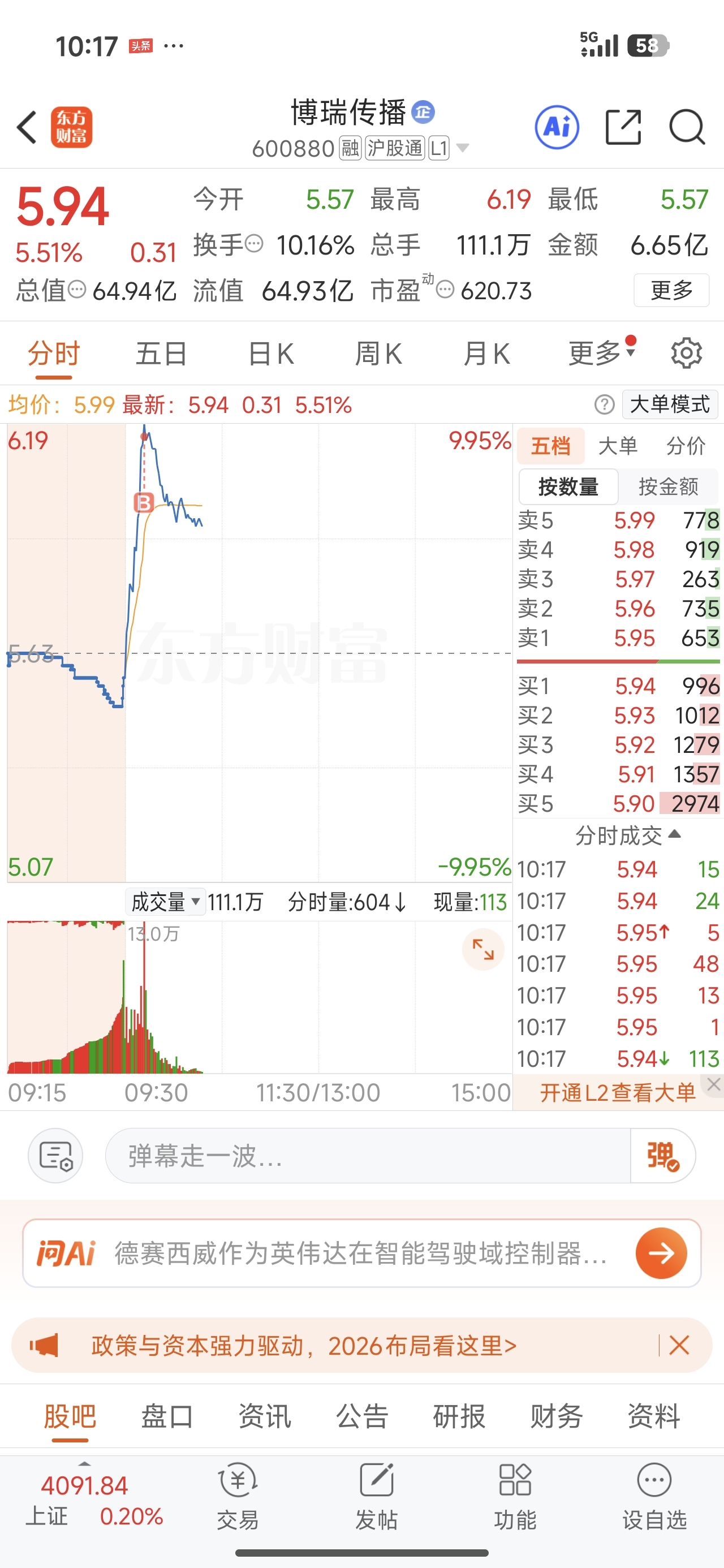 今天卖出城建发展,买入博瑞传播,本来追荣盛发财,慢了一点没有追到,可惜博瑞传播没