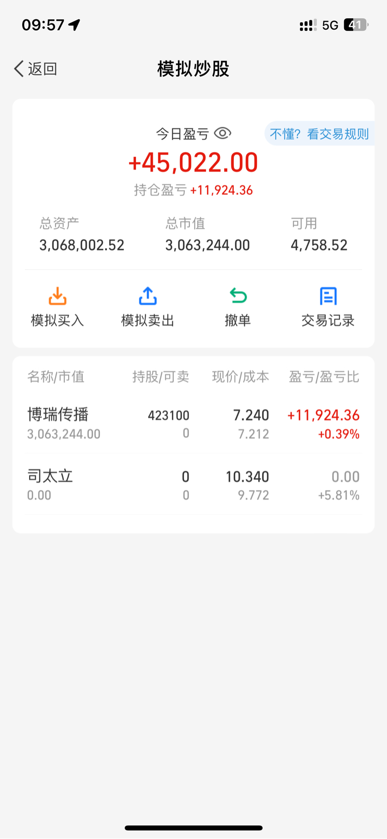 $博瑞传播(SH600880)$ 模拟炒股买入这个