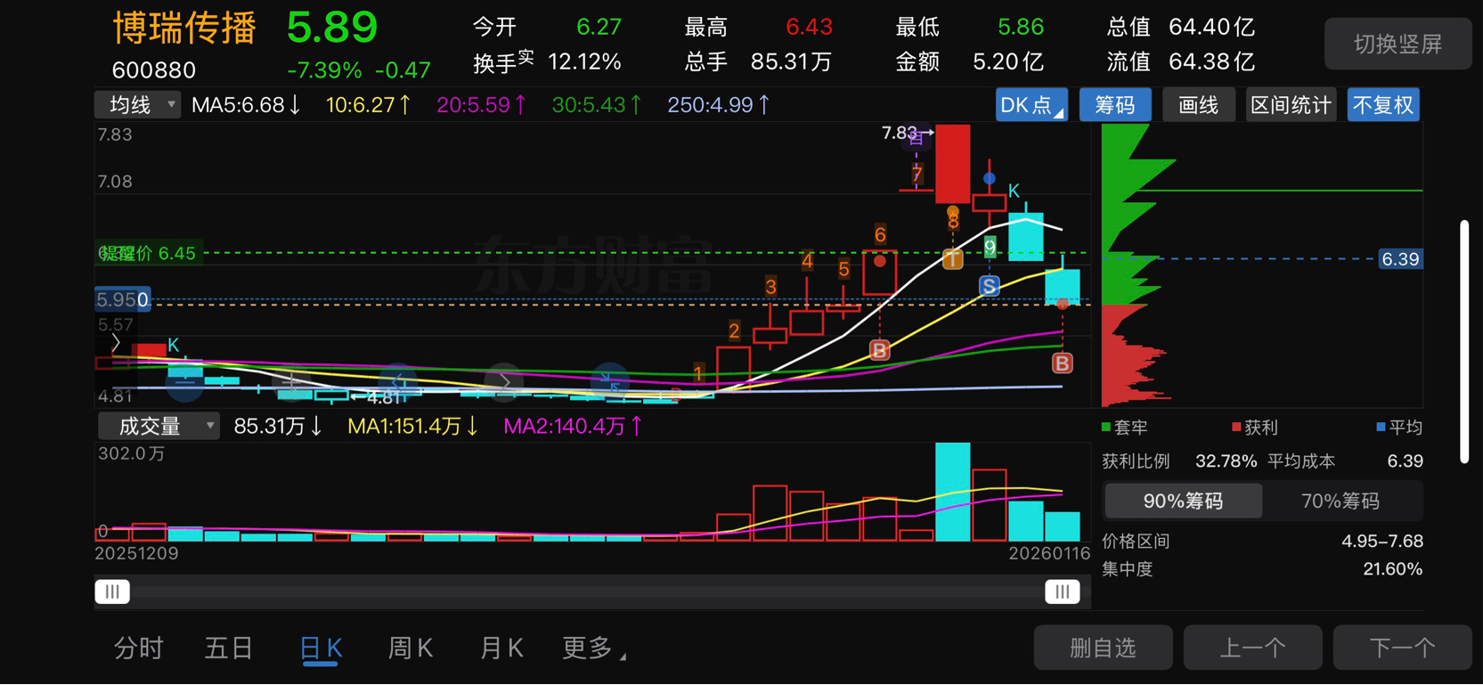 $博瑞传播(SH600880)$ 接点底仓,玩玩了