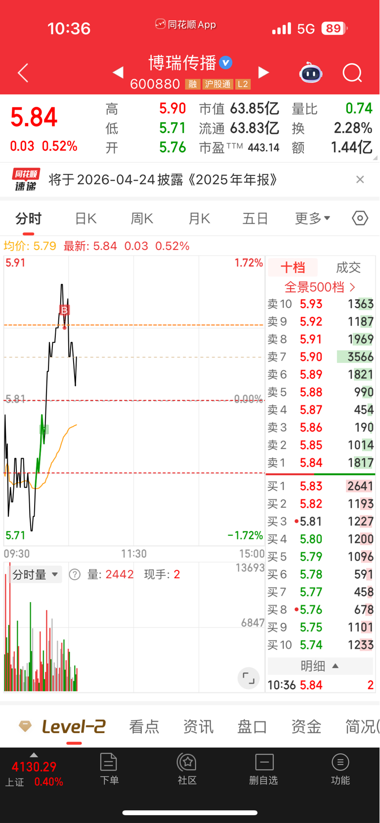 $博瑞传播(SH600880)$ 完了买了10w股,精准派发给我了
