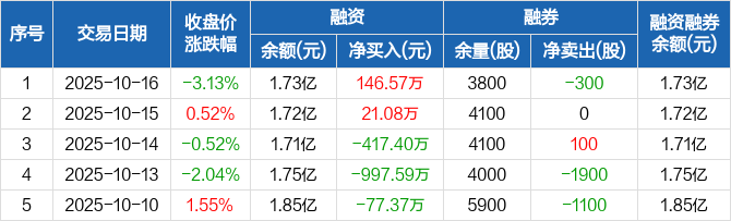 亚泰集团:融资净买入146.57万元,融资余额1.73亿元(10-16)