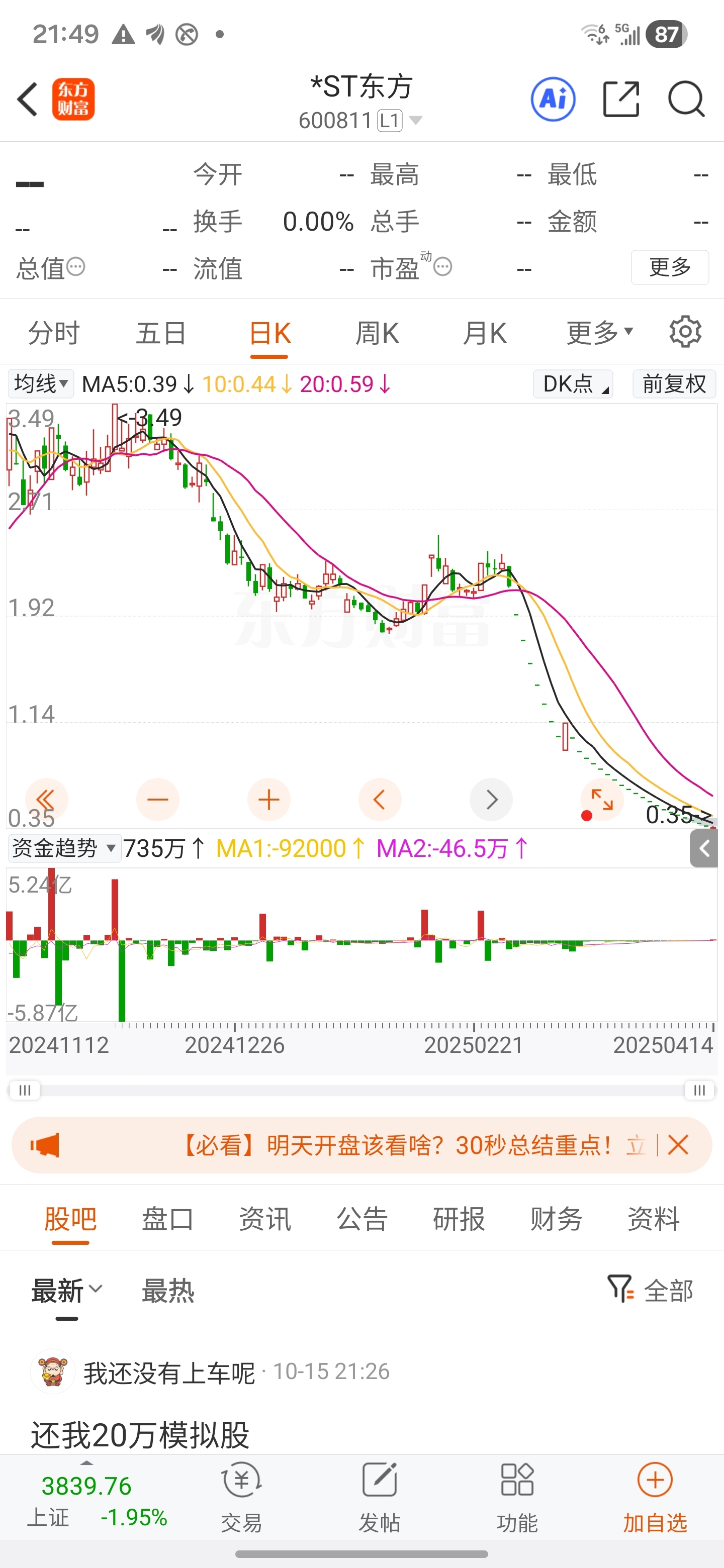 和东方集团退市前一个走势,就是要退市了,大家得警惕啊!