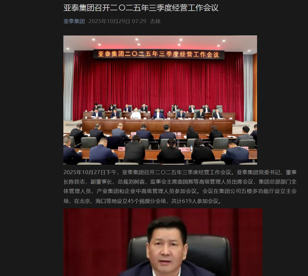 亚泰集团召开二〇二五年三季度经营工作会议
