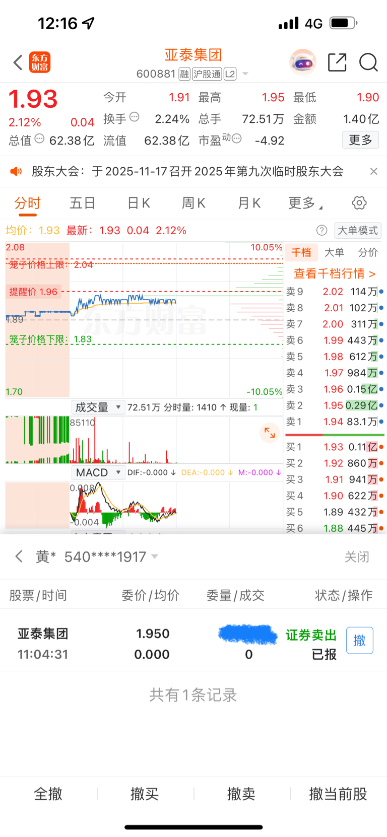 $亚泰集团(SH600881)$ 我也压