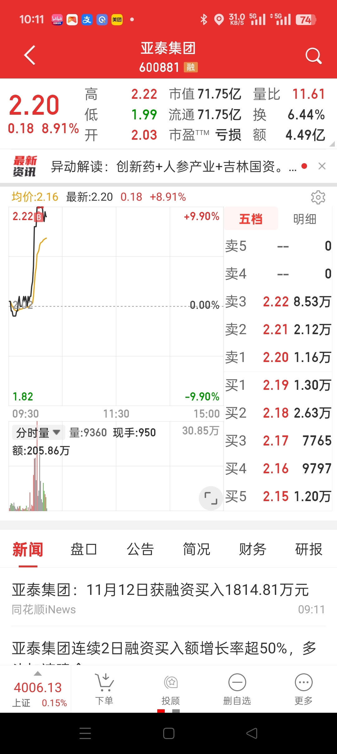 $亚泰集团(SH600881)$ 我打板主力就撤单了,大哥,封板吧