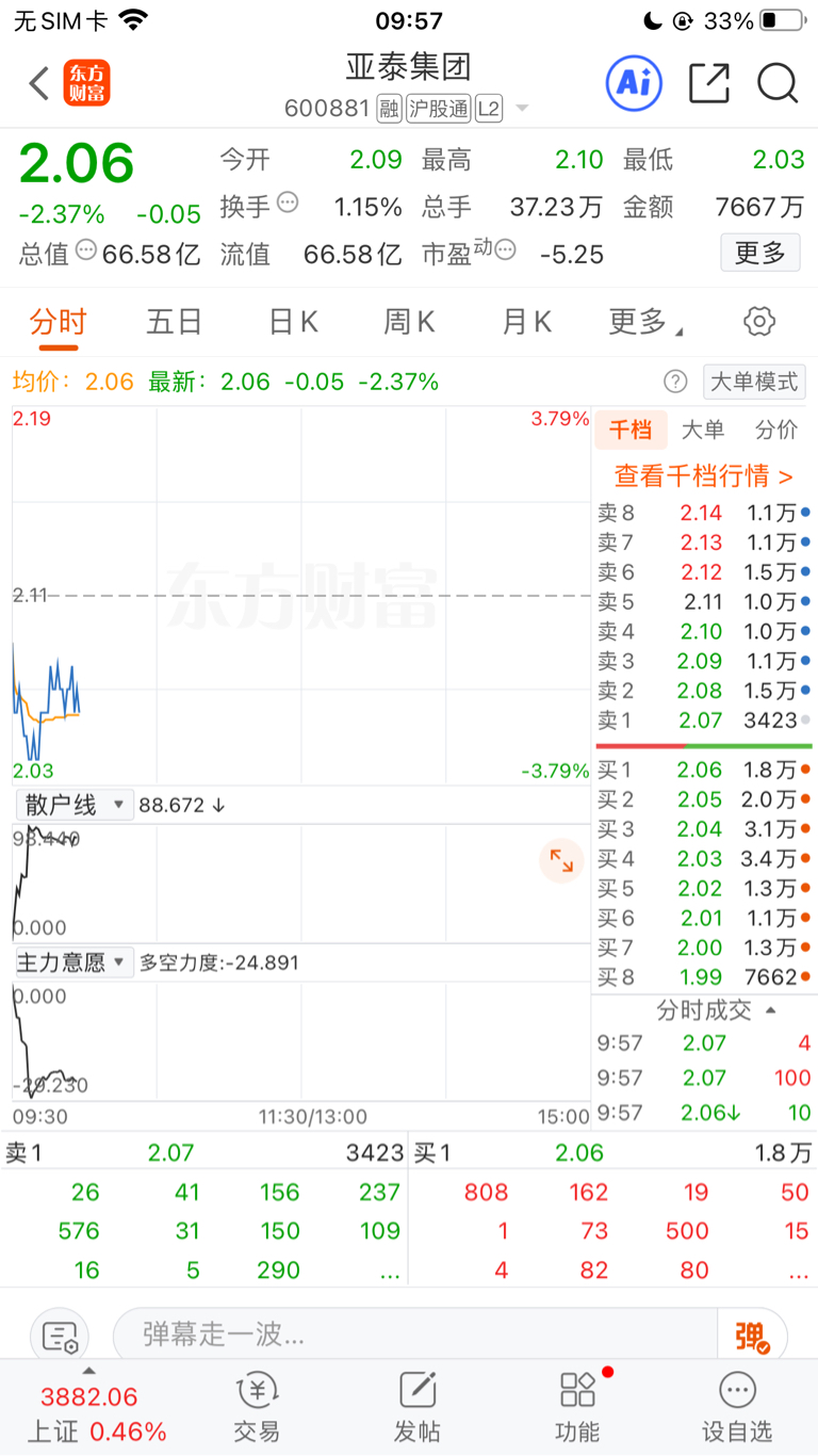 $亚泰集团(SH600881)$ 今天没希望,不用看了