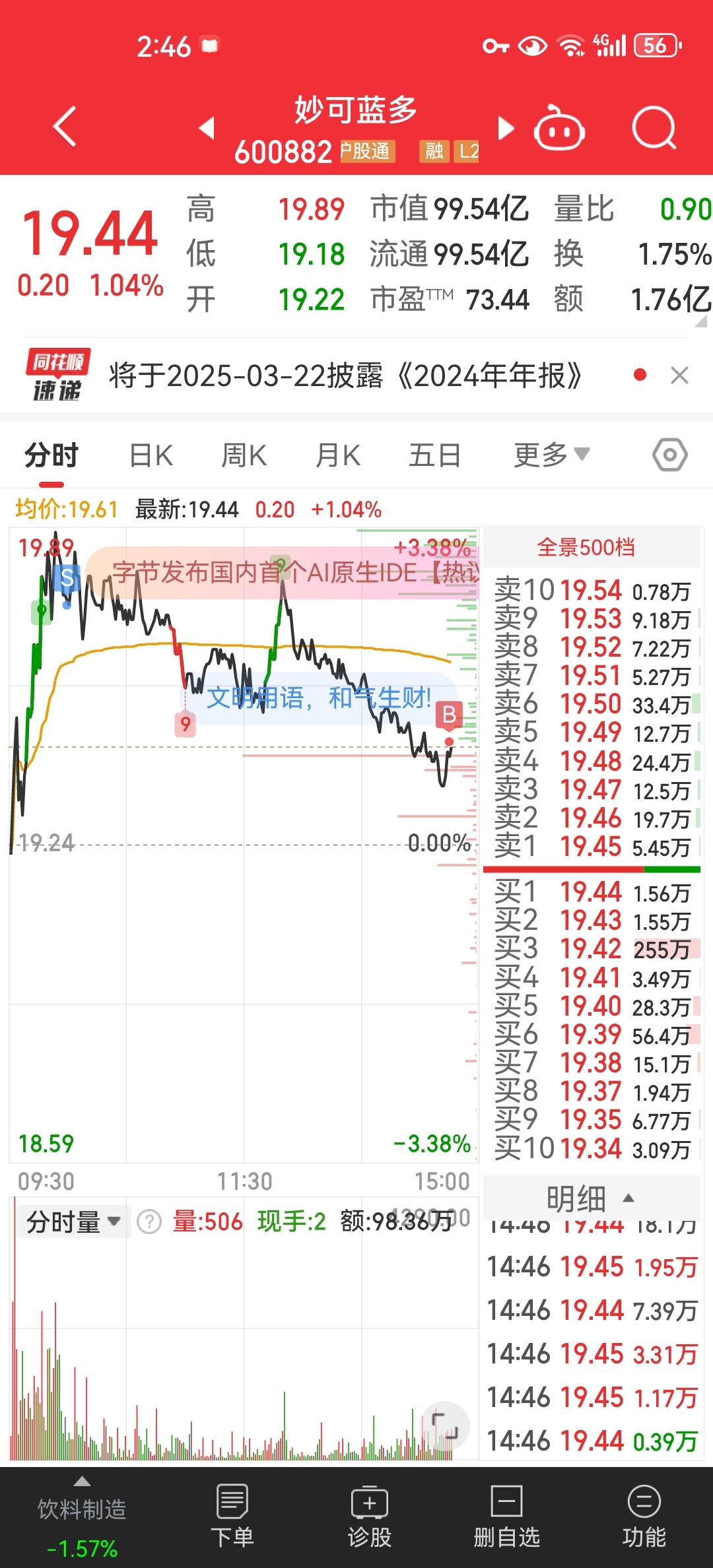 $妙可蓝多(SH600882)$ 。。。手慢了一步买回来。