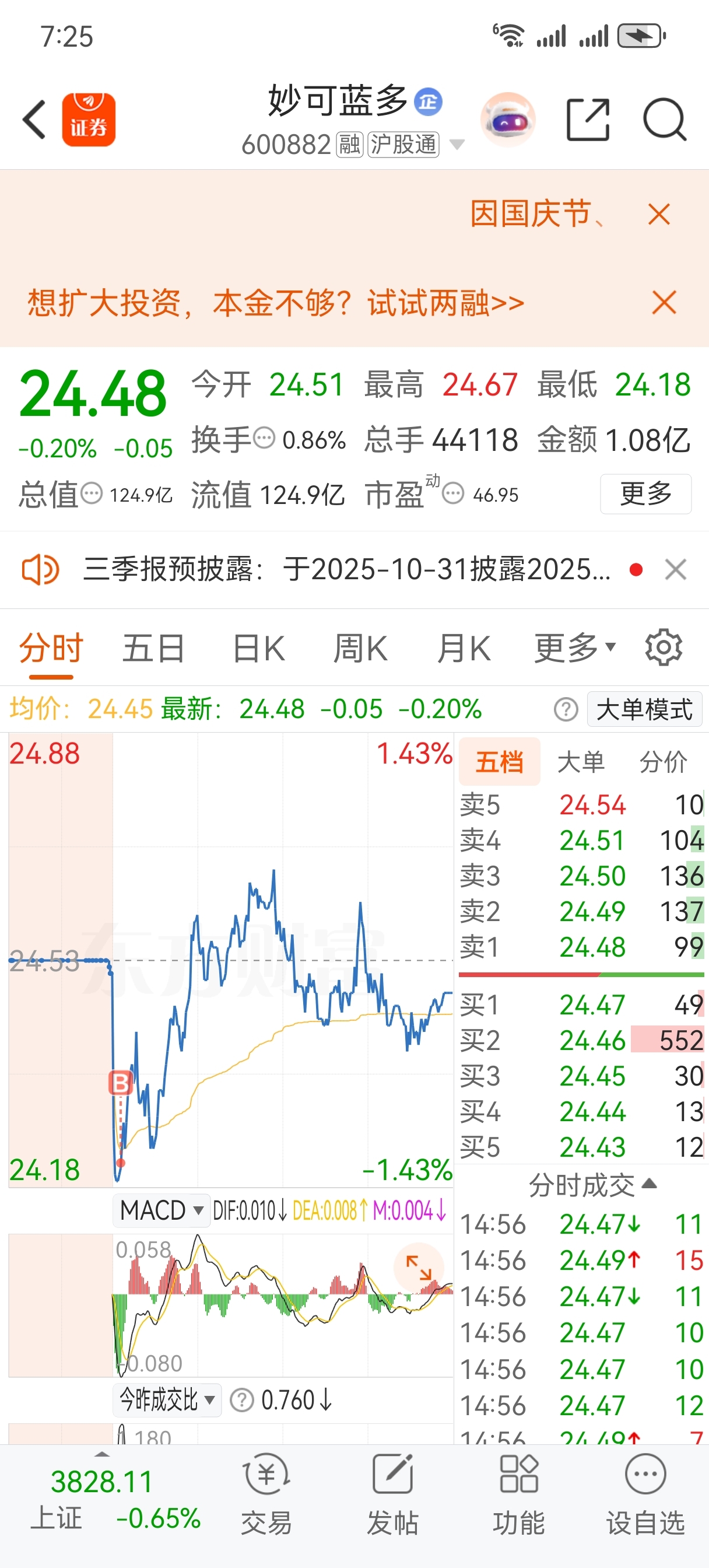 $妙可蓝多(SH600882)$ 多多我又回来了