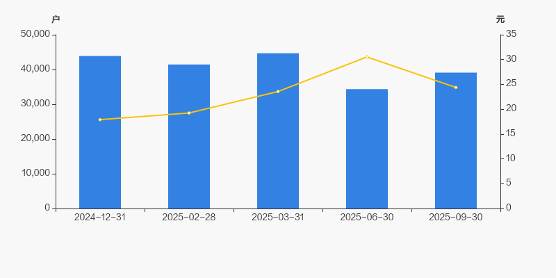 2024年12月31日至今,公司股东户数显著下降,区间跌幅为10.91%。2024年12月31日至2025年9月30日区间股价上涨36.20%。