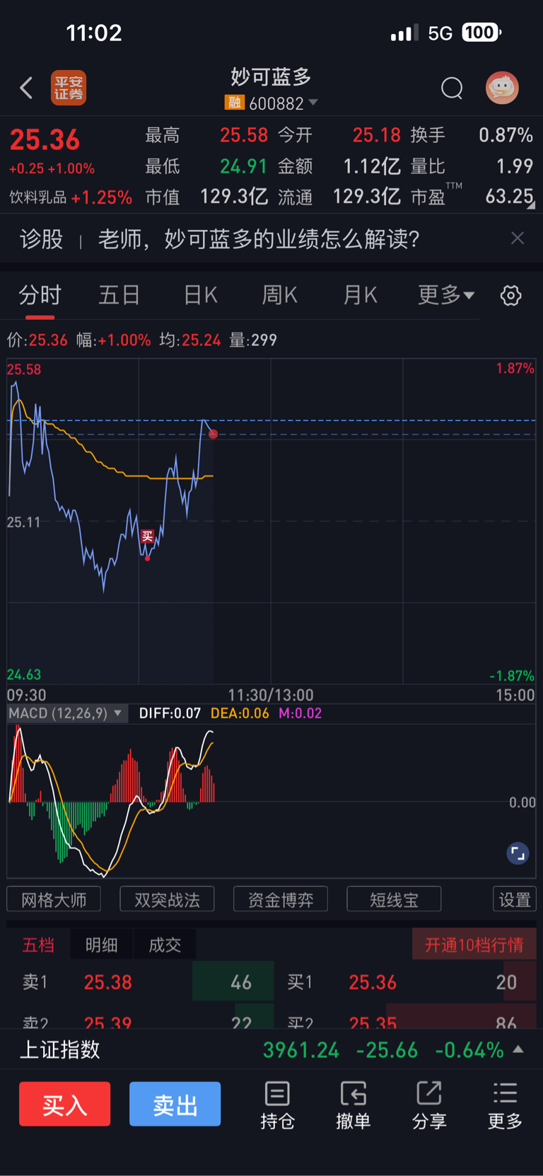 $妙可蓝多(SH600882)$ 满上了