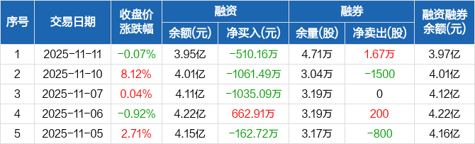 妙可蓝多融资融券信息显示,2025年11月11日融资净偿还510.16万元;融资余额3.95亿元,较前一日下降1.27%。
