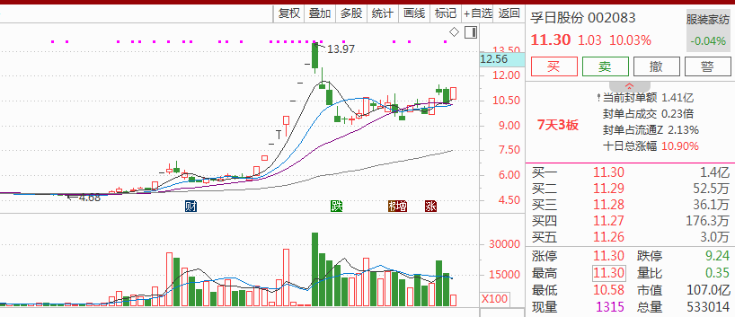 孚日股份,J工板块昨天掀起涨停潮,孚日股份首板不是最亮眼的那只,但是盘后又传来了小日子那边的事情,先前有过抗日寓意被炒作过,这次反包了前阴,昨天缩量秒板,今天有冲高惯性,只要不是跟前面一样冲高回落就稳了。