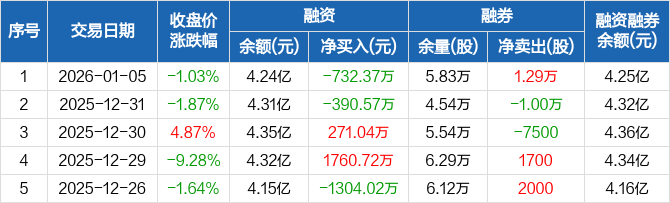 妙可蓝多:融资净偿还732.37万元,融资余额4.24亿元(01-05)