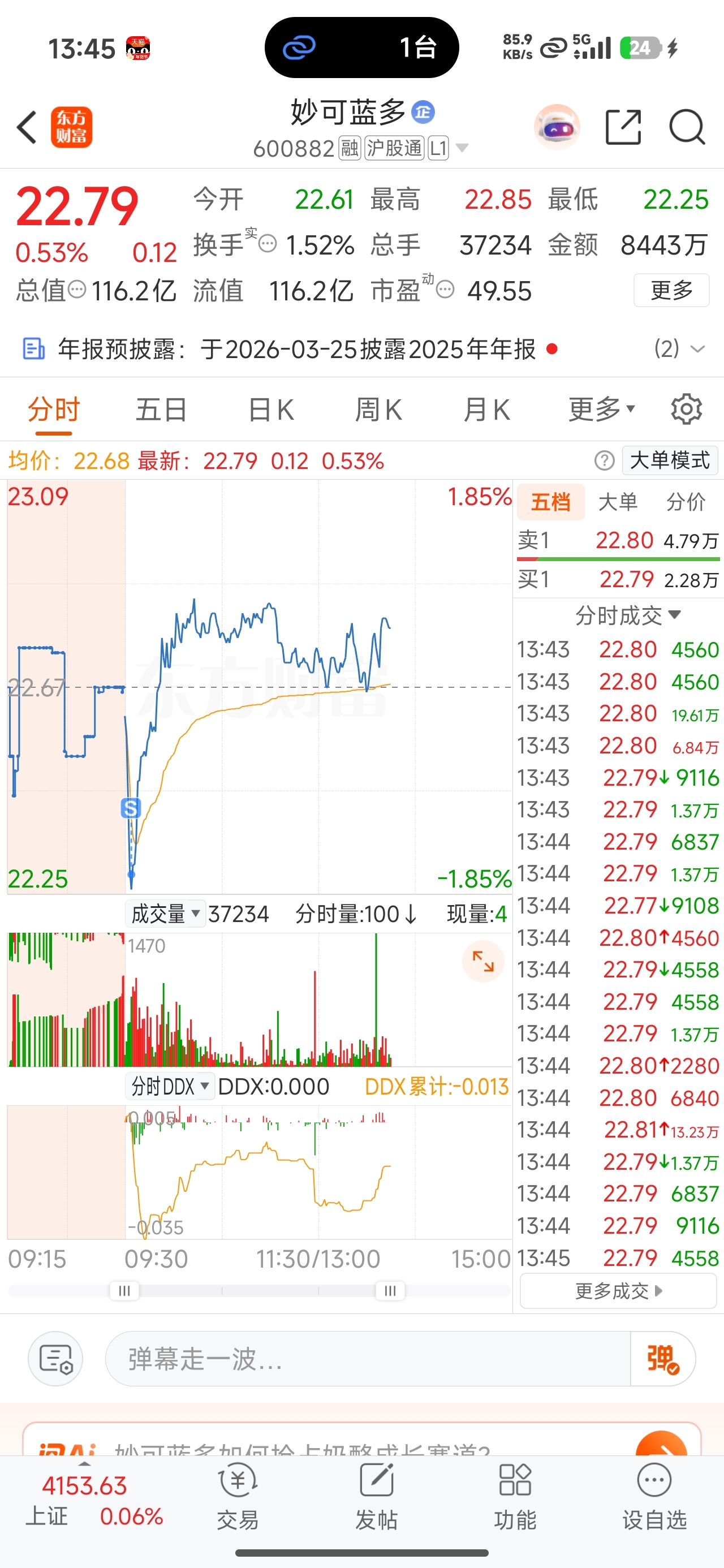 $妙可蓝多(SH600882)$ 妙可蓝多你让我没有爱啊