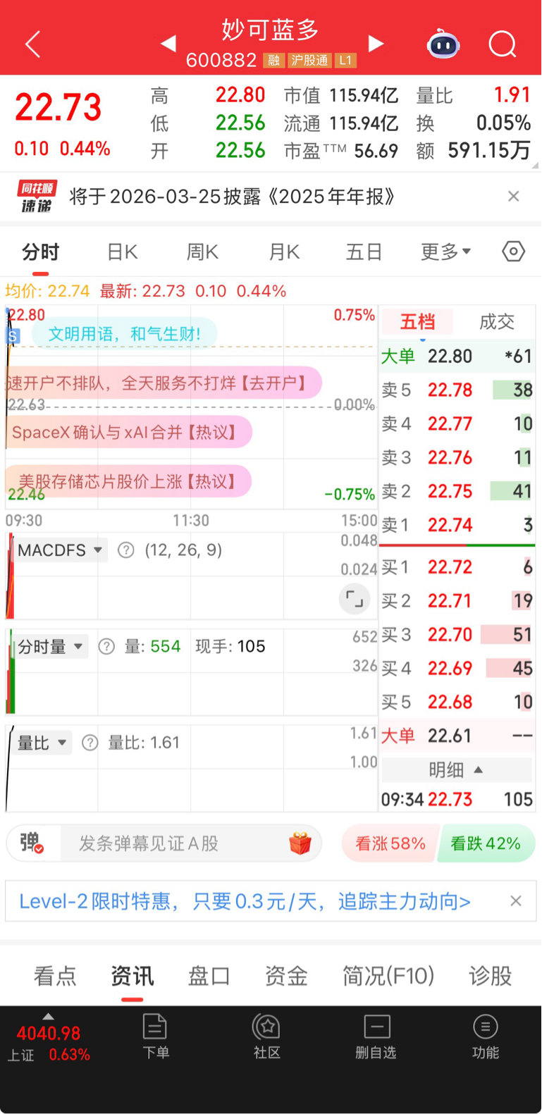$妙可蓝多(SH600882)$ 昨天尾盘买的,今天t出来