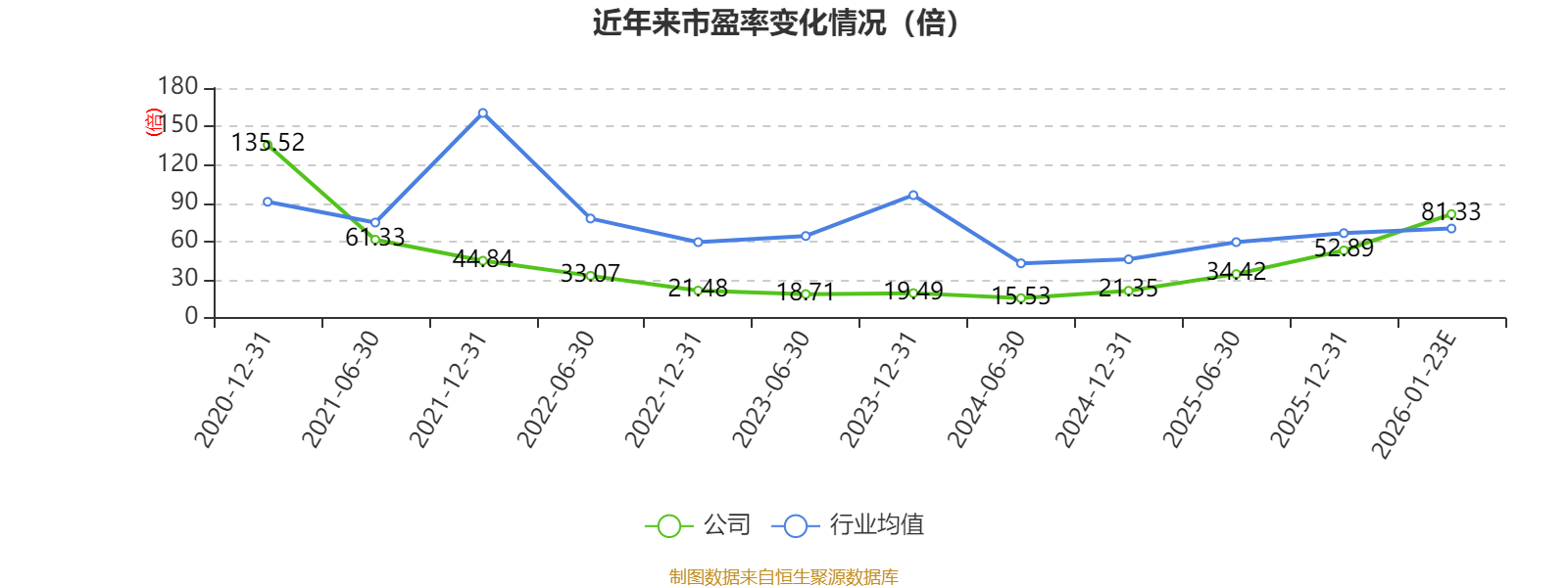 以本次披露业绩预告均值计算,公司近年市盈率(TTM)图如下所示: