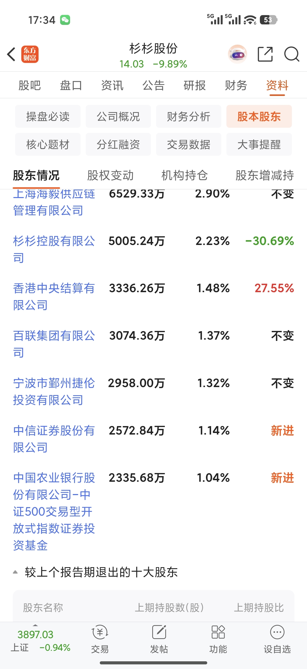 $杉杉股份(SH600884)$ 中信跑了