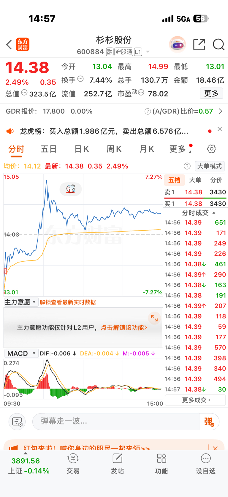 $杉杉股份(SH600884)$ 人有多大胆就有多少产.今天甚至不想T