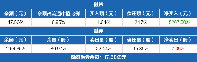 杉杉股份:融资净偿还5267.5万元,融资余额17.56亿元(10-13)