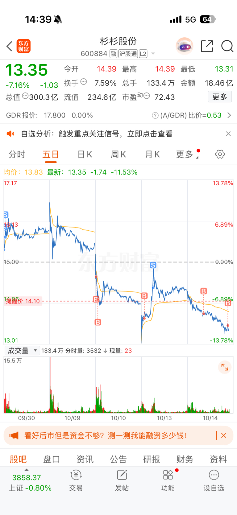 $杉杉股份(SH600884)$ 又是买在半山腰