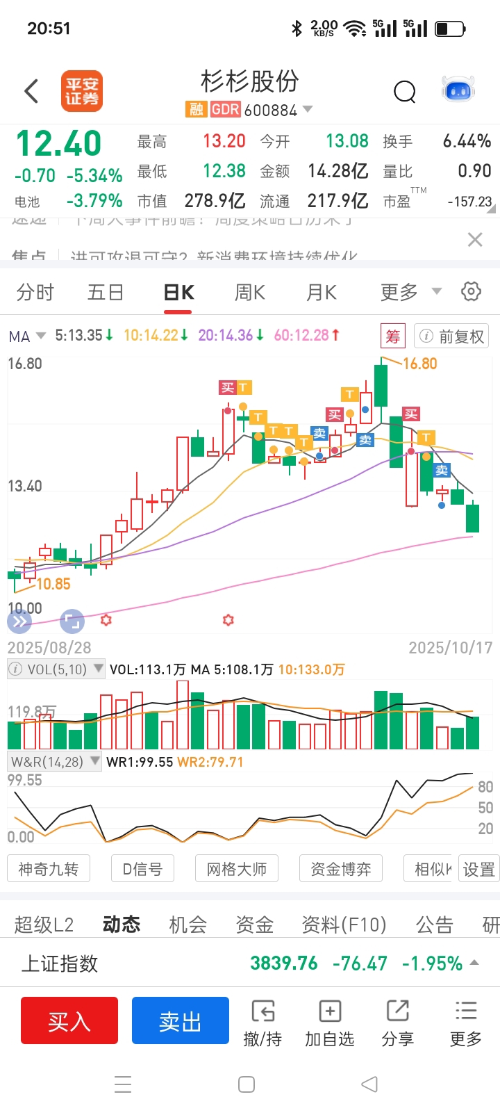 $杉杉股份(SH600884)$ 上次买了杉杉赚了8000多,这一次又买进去了,亏了1万8。还好,前天跑了。