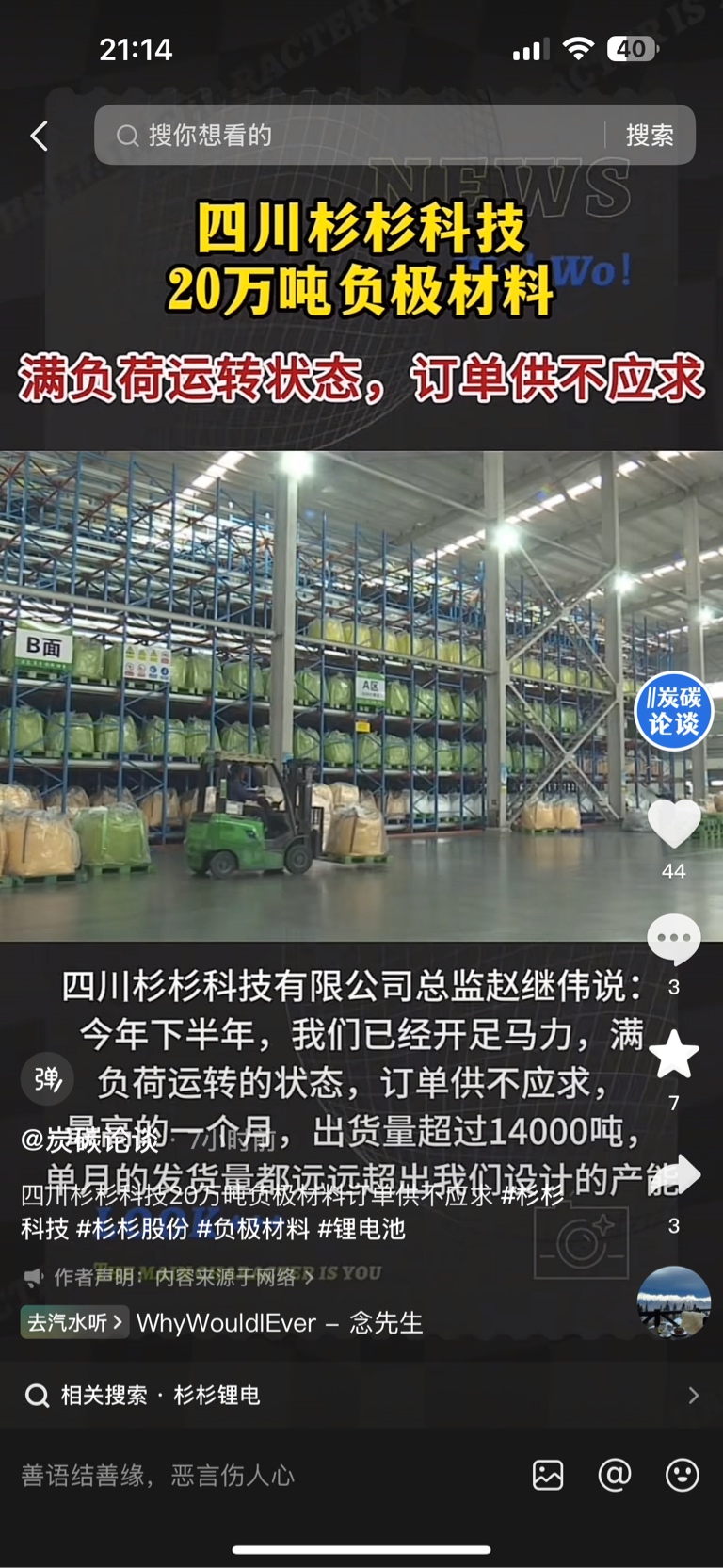 $杉杉股份(SH600884)$ 满负荷,供不应求。储能大爆发。