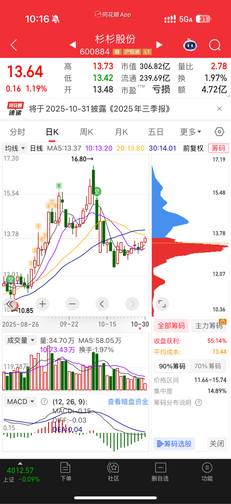 $杉杉股份(SH600884)$ 上面套牢盘割的差不多了,比前几天少多了