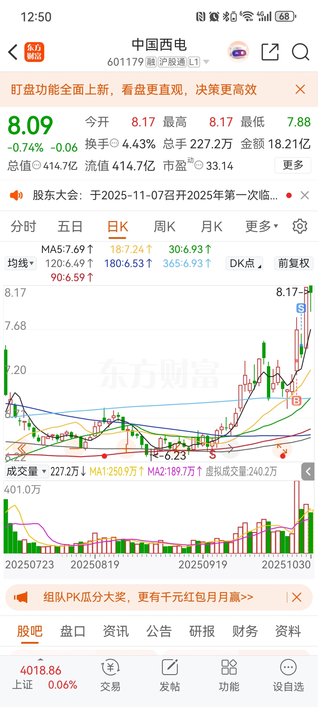 成功从中国西电切换到杉杉,又给我打的晕头转向
