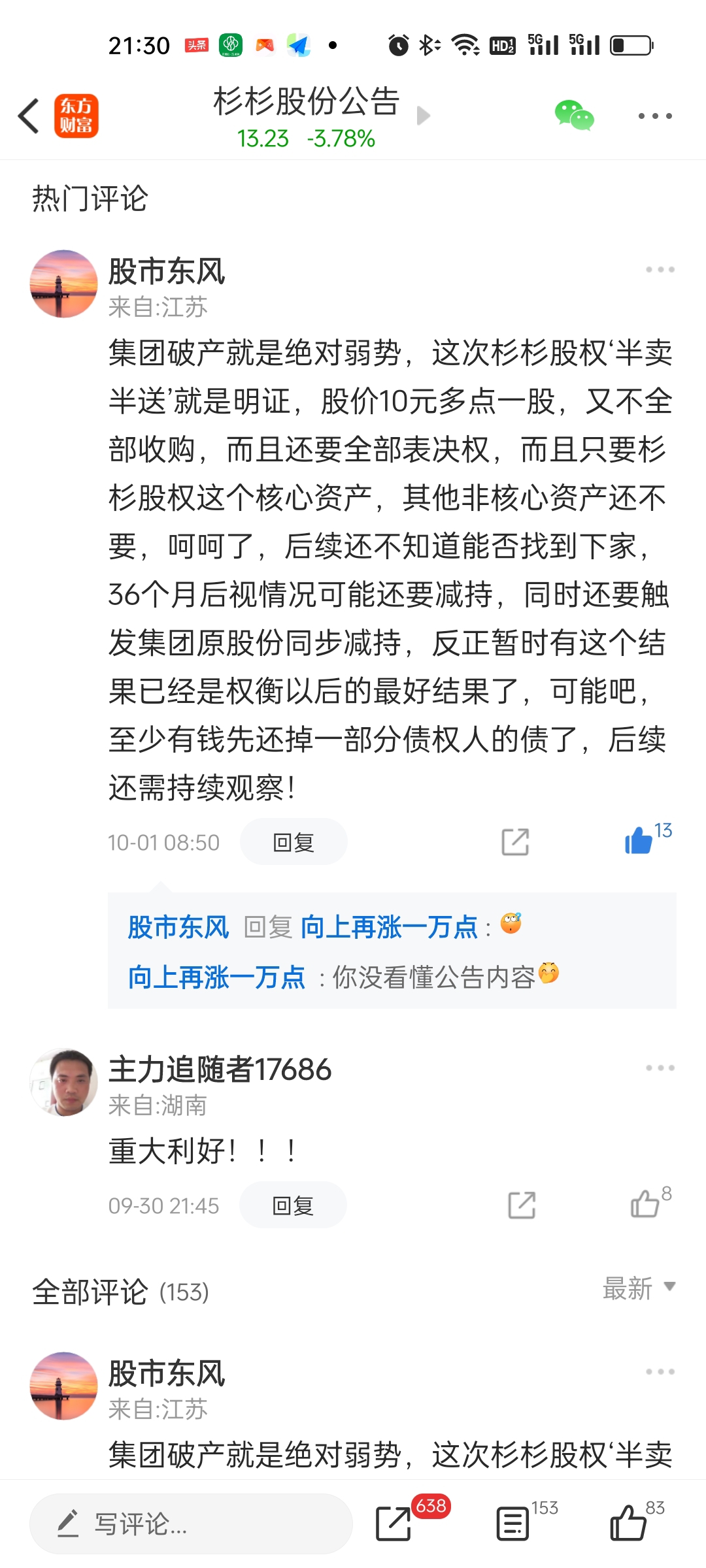 $杉杉股份(SH600884)$ 出资10就想控制市值几百亿的杉杉股份,天下哪有这样的好事,船王想以小博大无异于博弈,否决是大利好,继续观察后期再次重整结果。