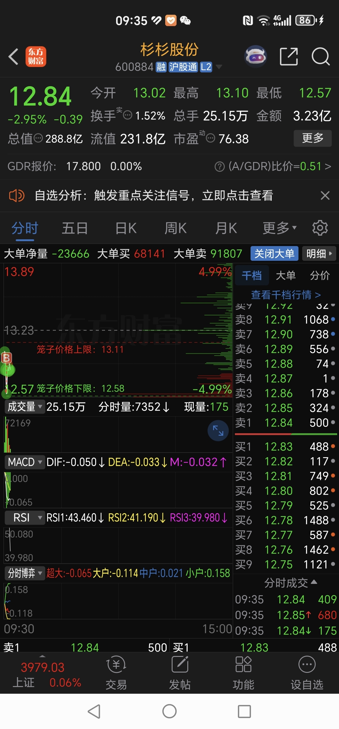 $杉杉股份(SH600884)$ 12.63 打满了,谁怕谁啊