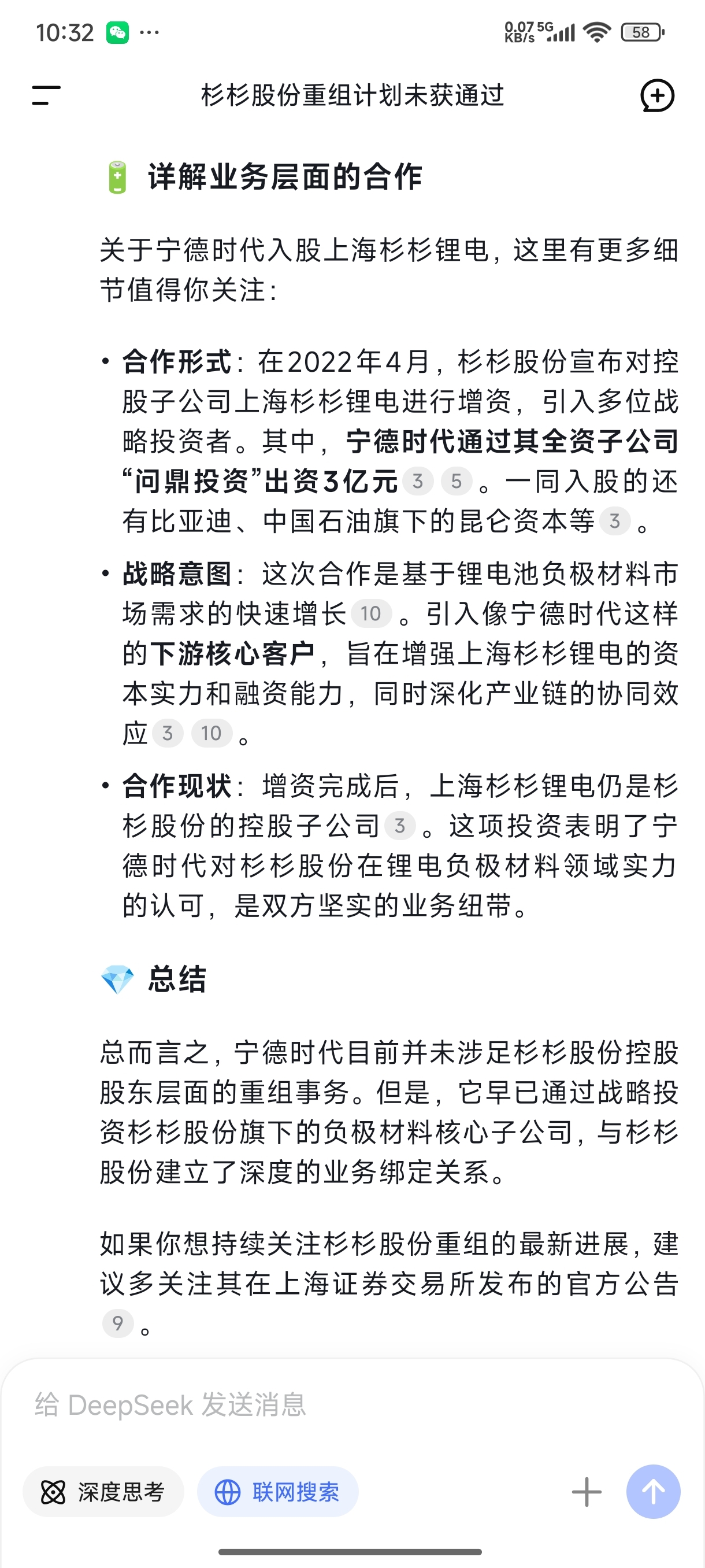 $杉杉股份(SH600884)$ 宁德时代早已入股上海杉杉锂电3亿元,有可能参与重组