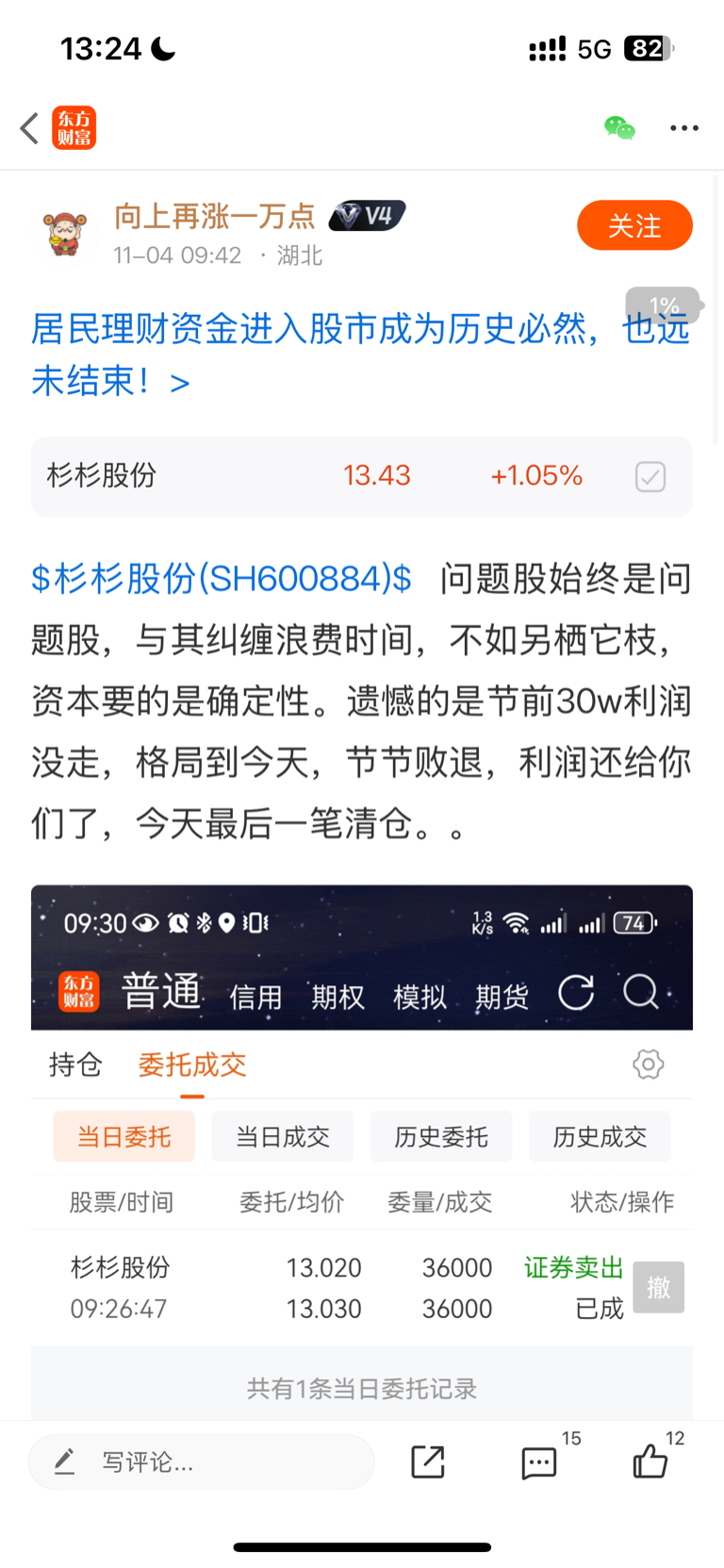 $杉杉股份(SH600884)$ 此傻勾空勾割肉就大涨还好意思叫,真是又菜又爱玩