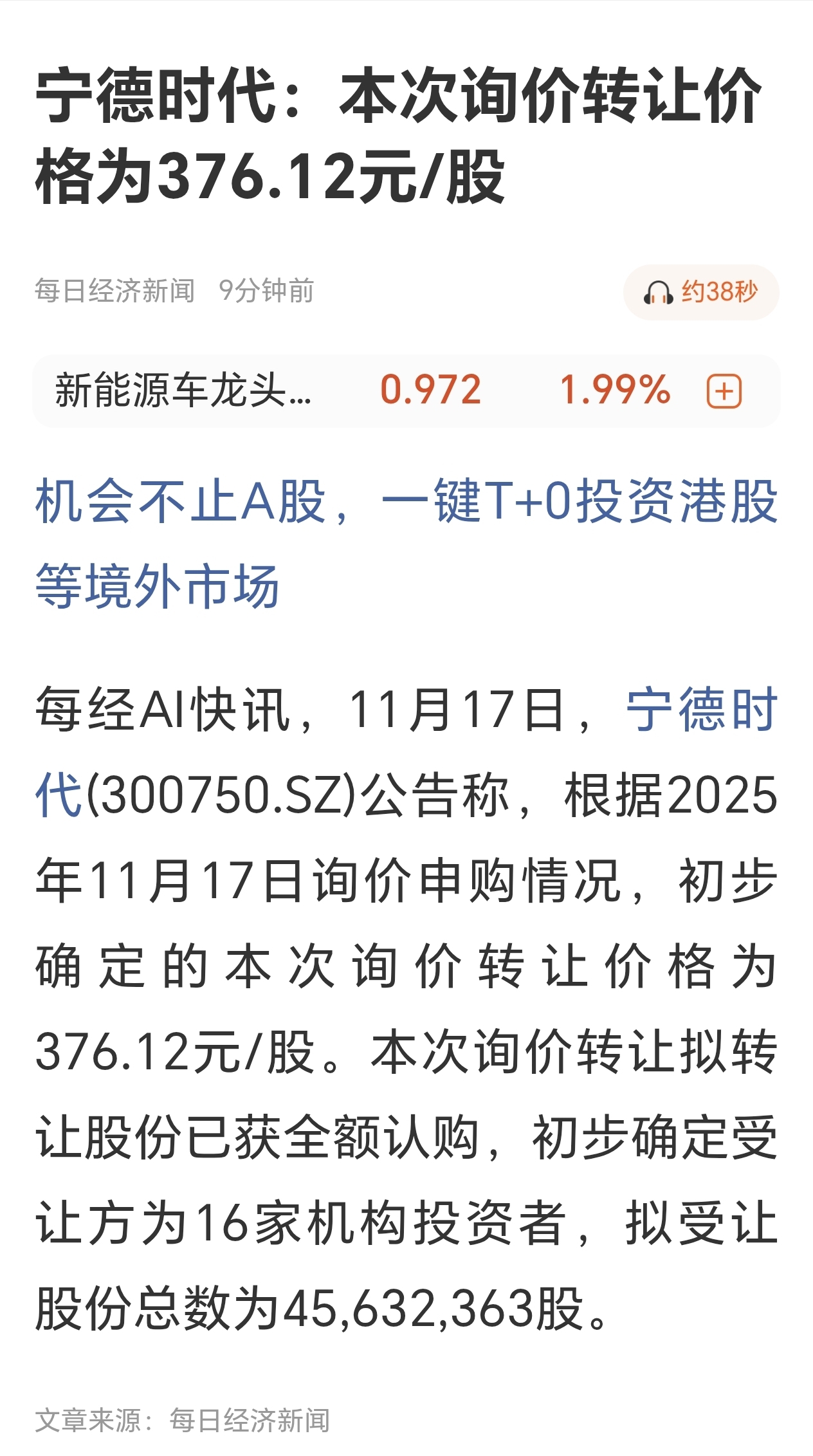 $杉杉股份(SH600884)$ 这转让是真迅速啊!以价格376.12元被16家机构包了。黄老板看来势必要拿下杉杉控股权,和他布局储能领域协同太强了,之后订单及产业技术都会不遗余力的支持吧。