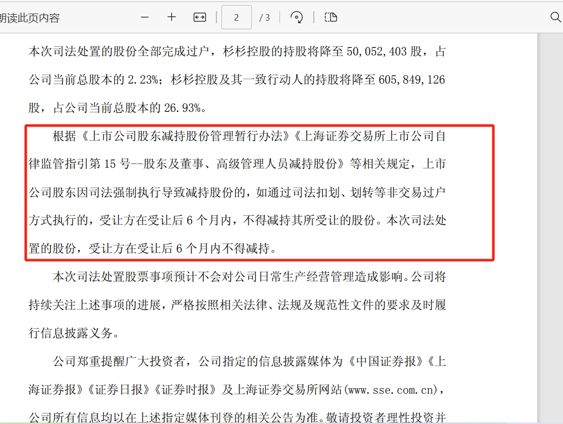 钟革2025年5月通过司法拍卖获得杉杉股份2215万股股票。2025年5月29日