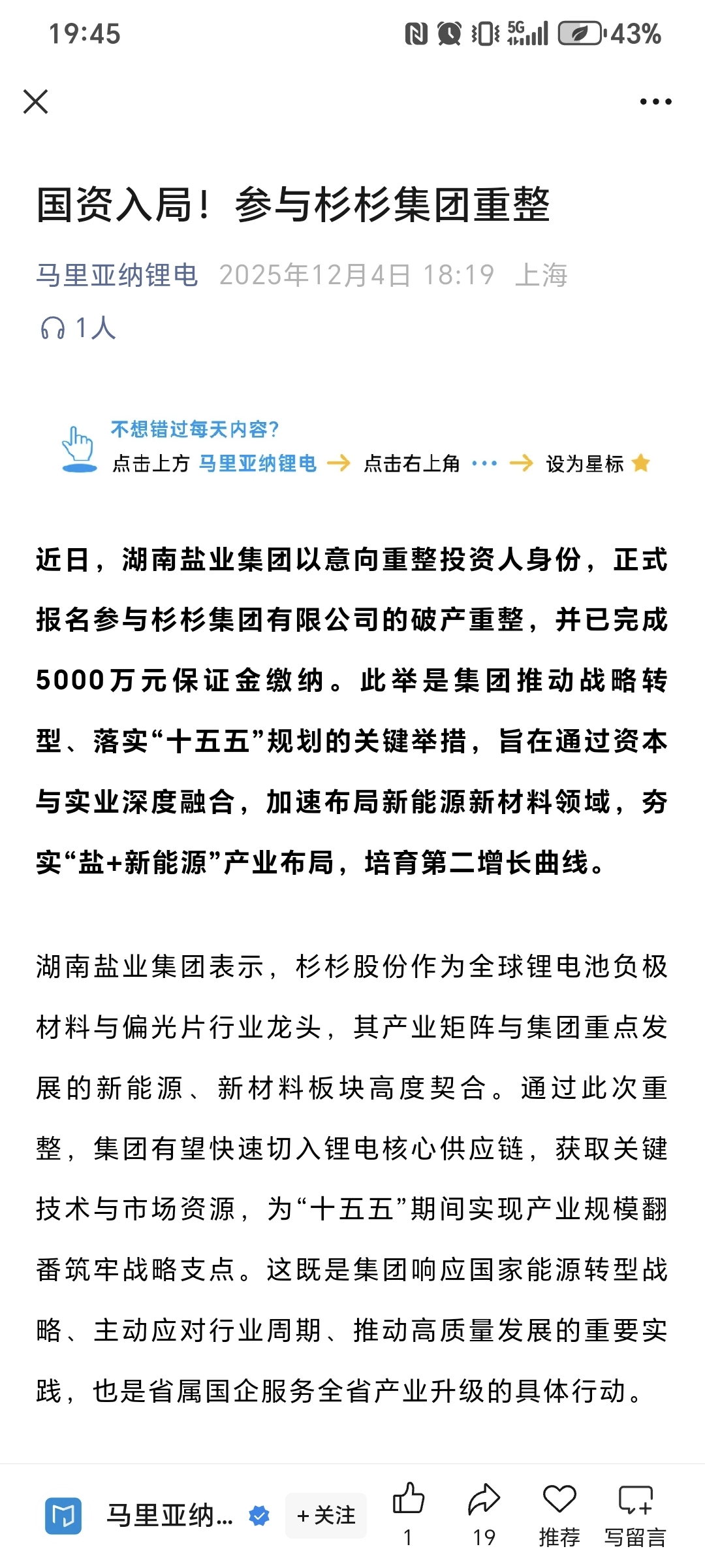 $杉杉股份(SH600884)$ 花落谁家?拭目以待