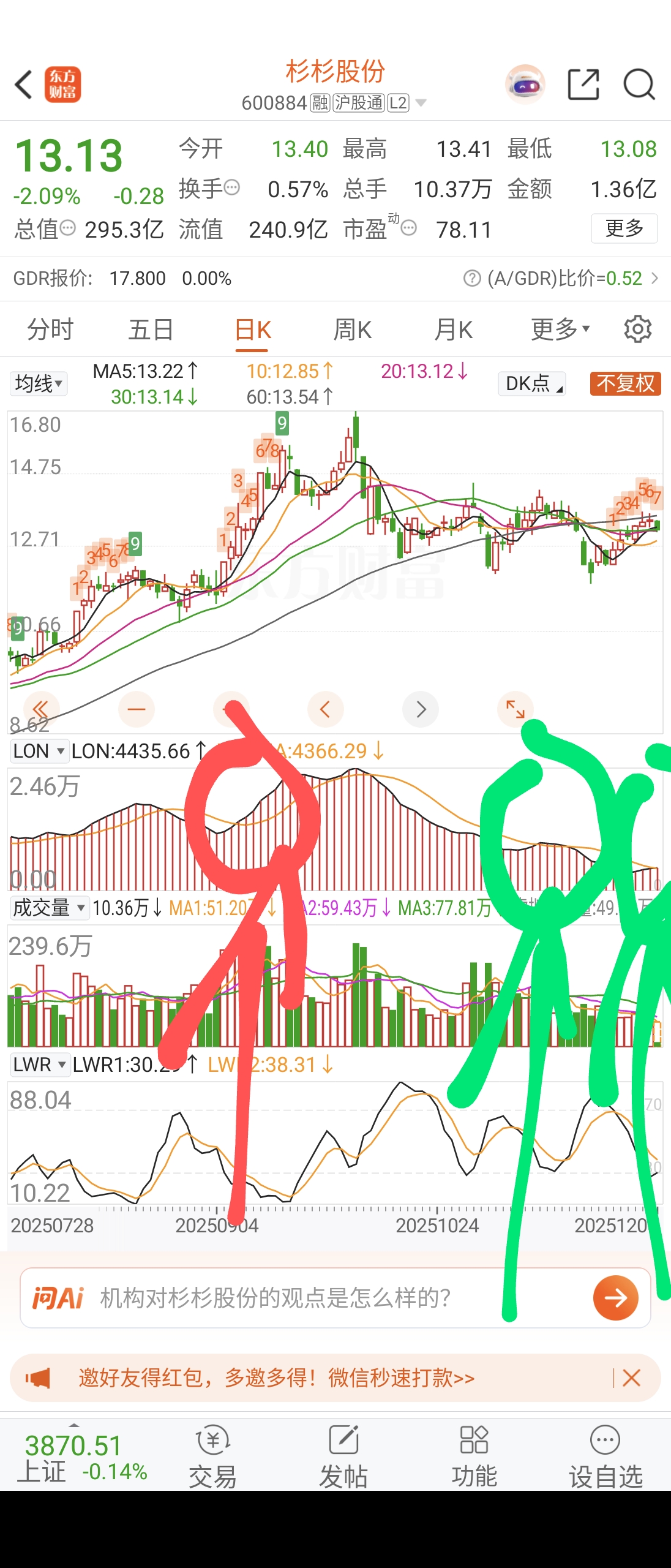 趋势下跌,周线感觉要大跌了,周末如果出消息,周一高开就跑(留个底仓就行)。就算是