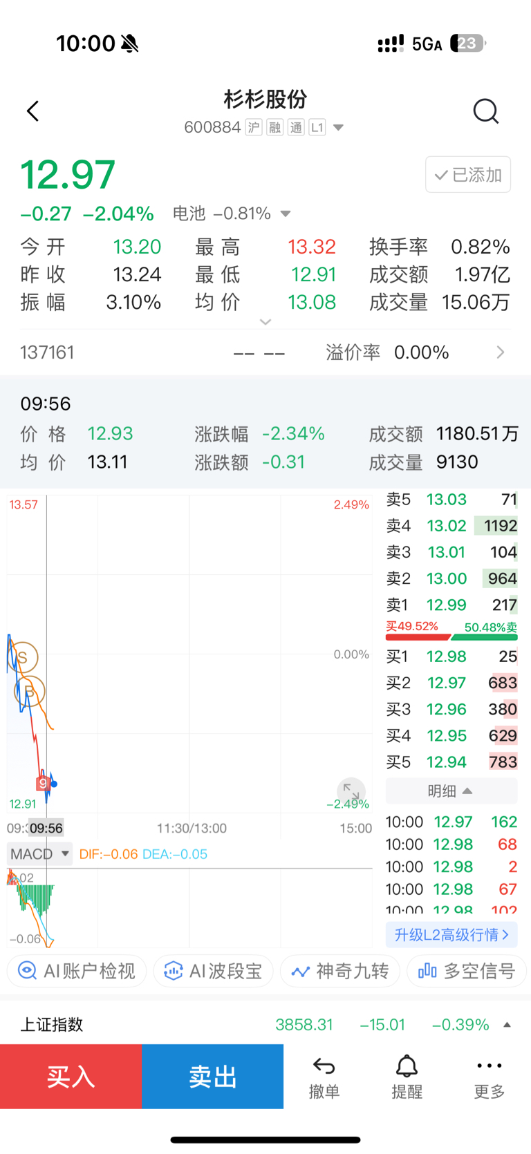 $杉杉股份(SH600884)$ 依旧接早T了一毛钱