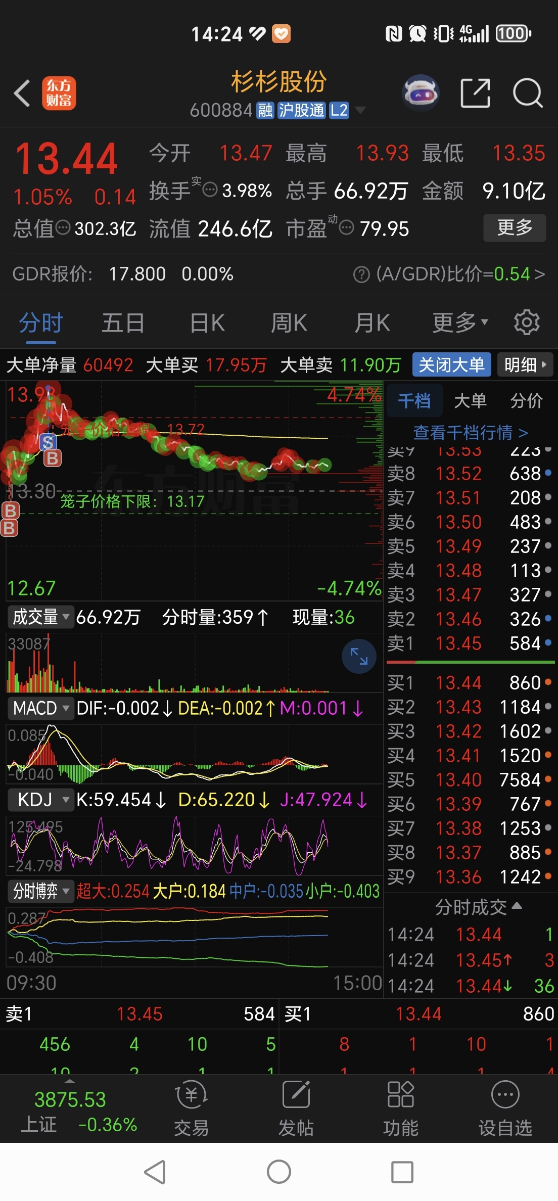 $杉杉股份(SH600884)$ 13.47 进的 91 卖的,看这么强势以为要拉板 80 又冲进来了,恶心啊,主力劝你耗子尾汁,想要把我甩下车唯有拉高,低于五个点我都懒得卖