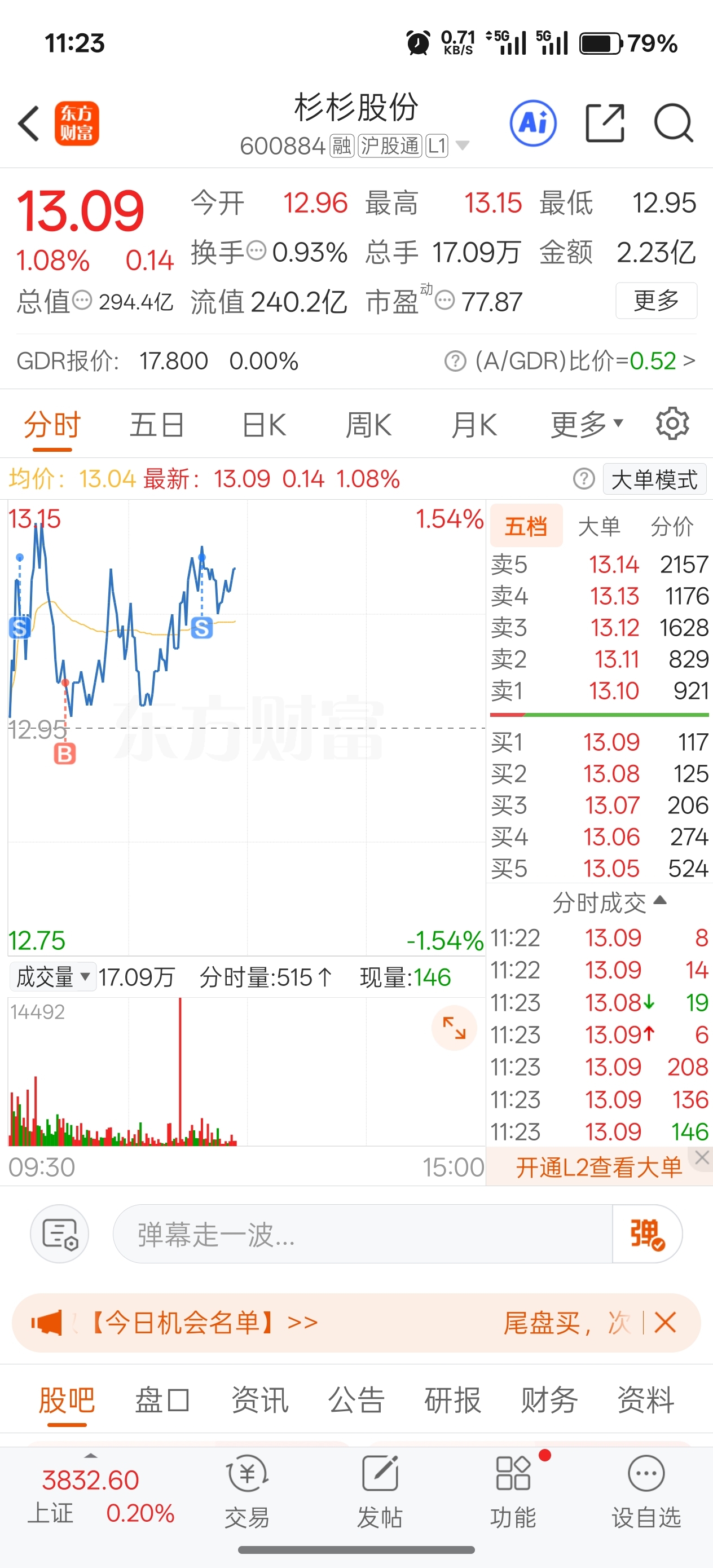 $杉杉股份(SH600884)$ 卖了卖了,剩个底仓,明天跳空低开,包跌的