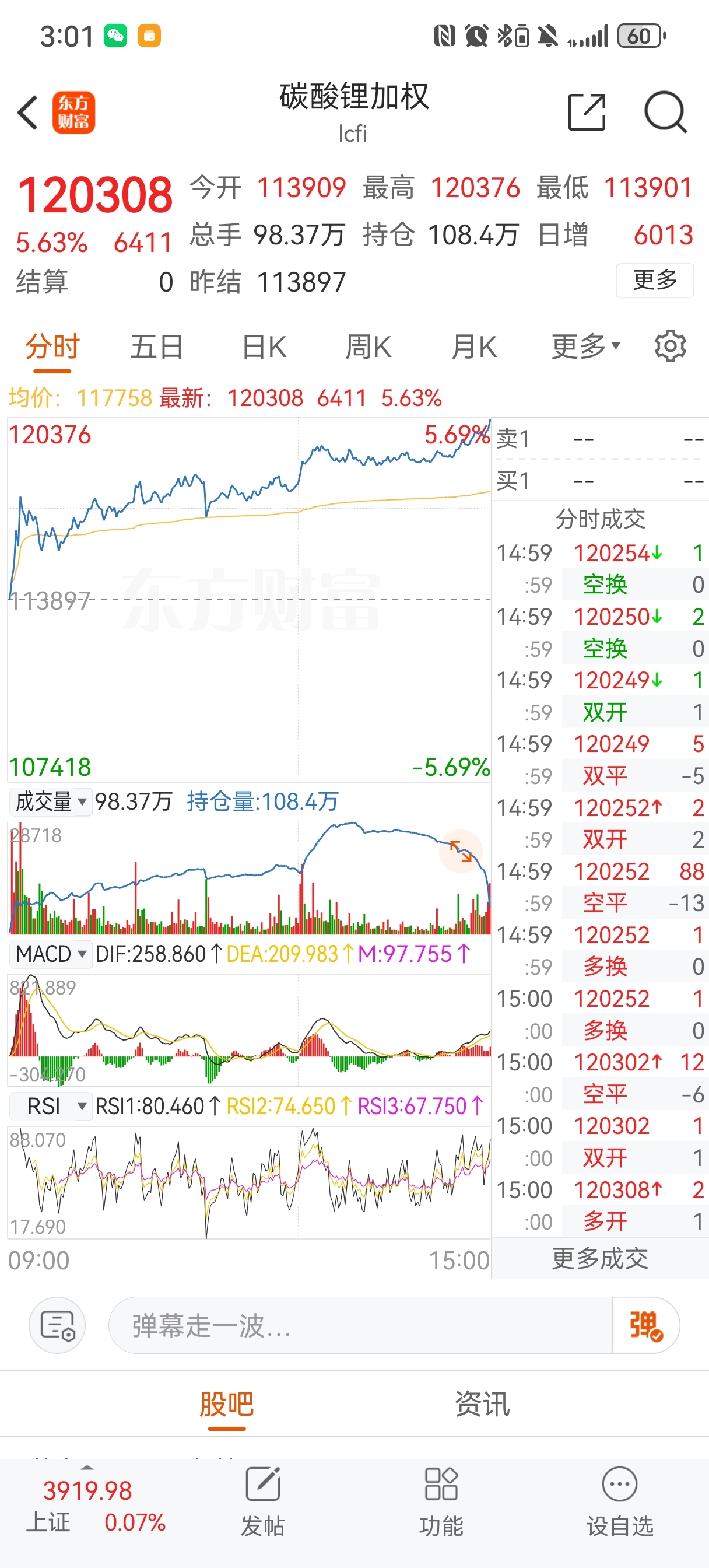 $杉杉股份(SH600884)$ 碳酸锂期货5.36%,正式突破12w/吨,并且尾盘近乎最高点收盘站稳12w!票就这?市场全是瞎是吧,哪来的敢绿啊?