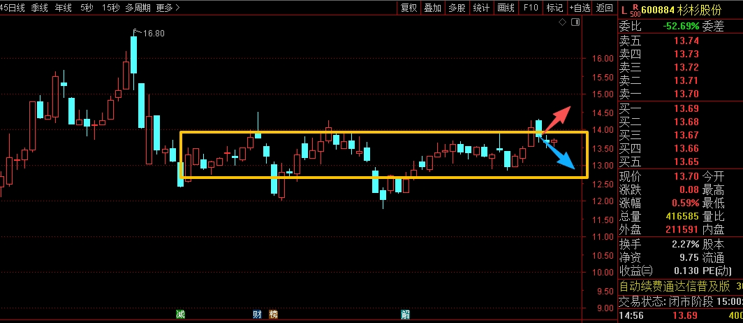 $杉杉股份(SH600884)$ 近期只要是高位回落后,走了一个横盘的趋势,在一个箱体内横盘震荡,接下来就盯着箱体的得失,能横盘或者是逐步突破都没问题,但如果回落下来,跌破箱体下沿区域的话,就要控制仓位应对潜在的破位连续下杀的风险了,等后面走位了再考虑回补。#炒股日记# #收盘点评#