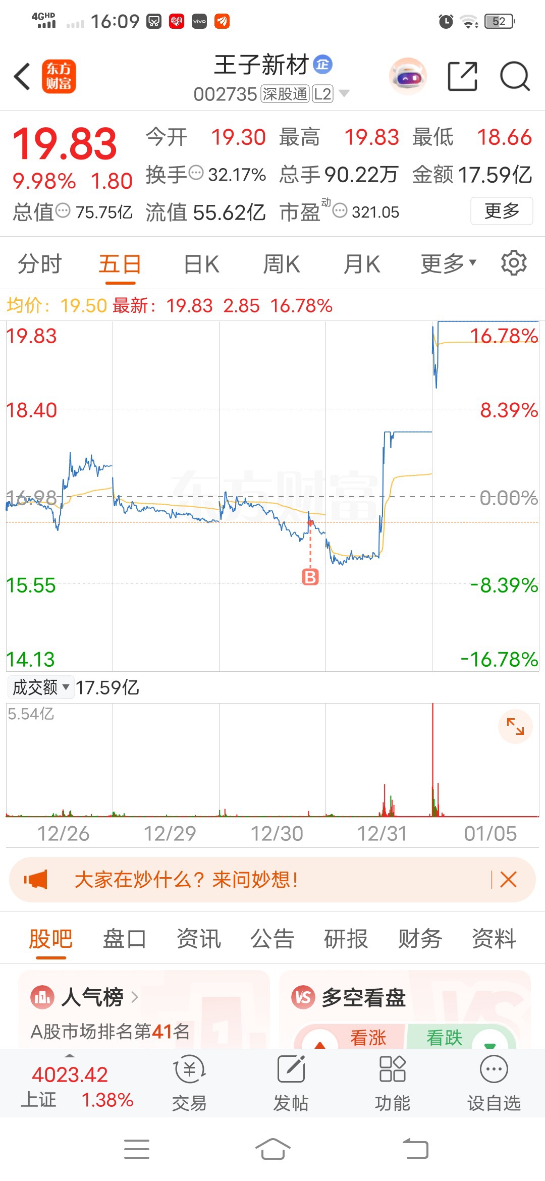 温馨提示: 1.根据《证券法》规定,禁止编造、传播虚假信息或者误导性信息,扰乱证券市场;2.用户在本社区发表的所有资料、言论等仅代表个人观点,与本网站立场无关,不对您构成任何投资建议。用户应基于自己的独立判断,自行决定证券投资并承担相应风险。《东方财富社区管理规定》