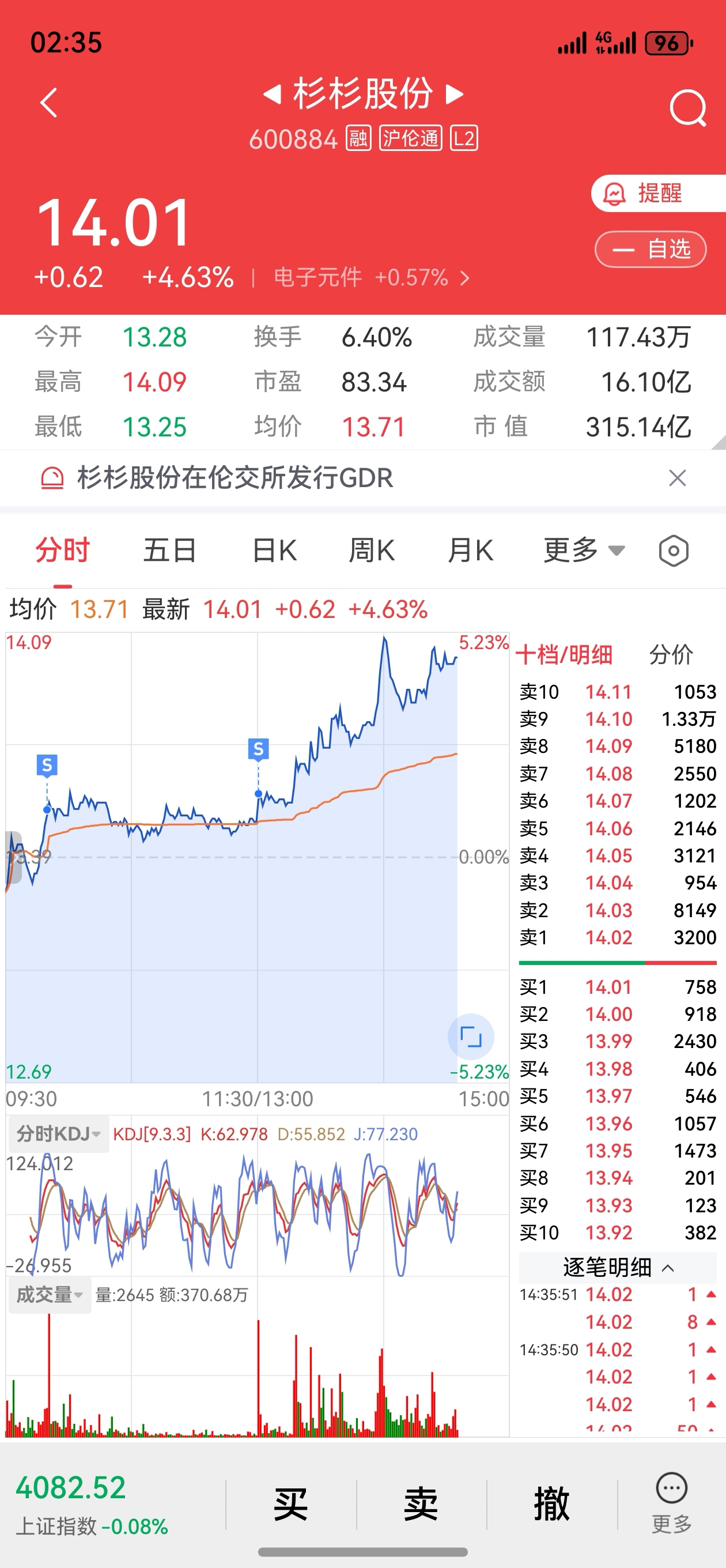 $杉杉股份(SH600884)$ 今天卖飞了…好多天不动了,一卖就涨…牛逼啊