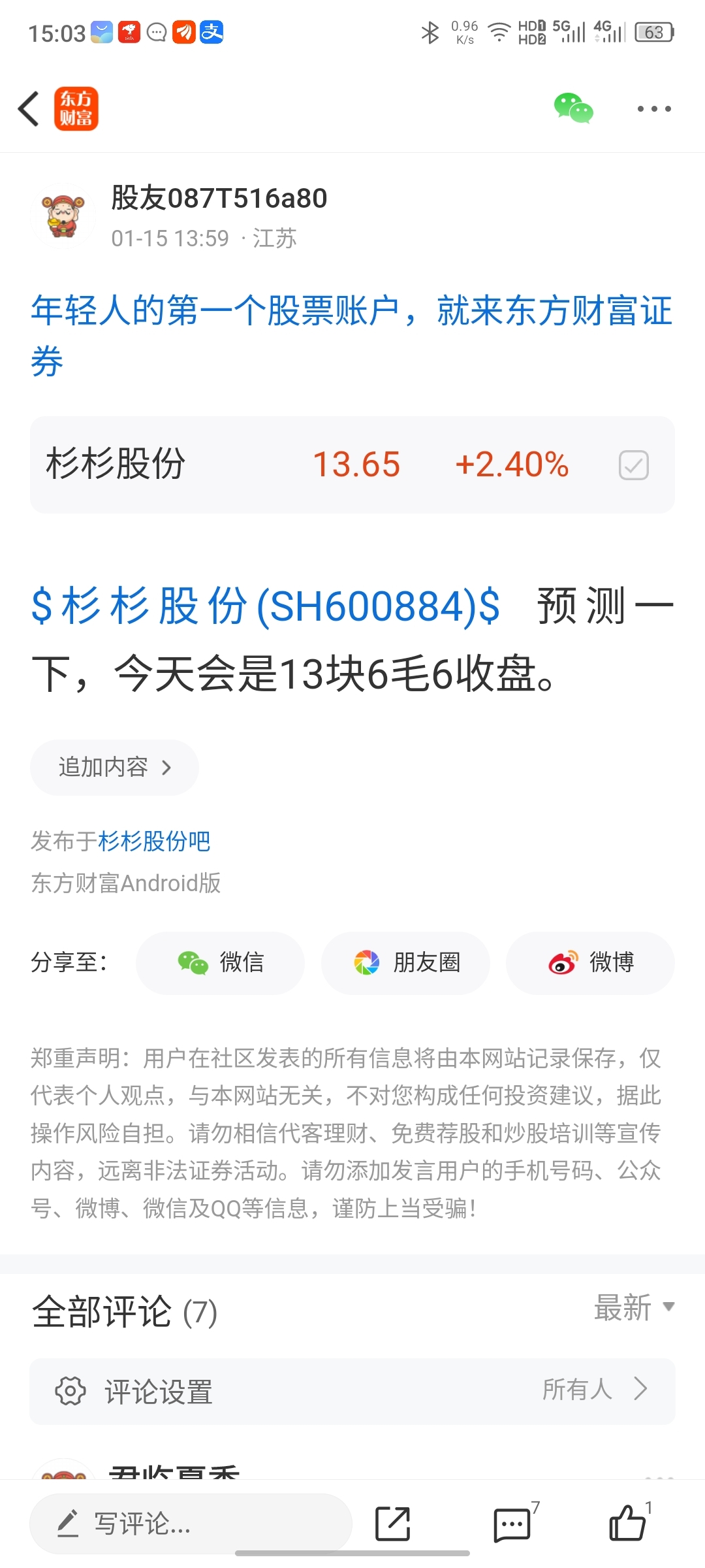 温馨提示: 1.根据《证券法》规定,禁止编造、传播虚假信息或者误导性信息,扰乱证券市场;2.用户在本社区发表的所有资料、言论等仅代表个人观点,与本网站立场无关,不对您构成任何投资建议。用户应基于自己的独立判断,自行决定证券投资并承担相应风险。《东方财富社区管理规定》