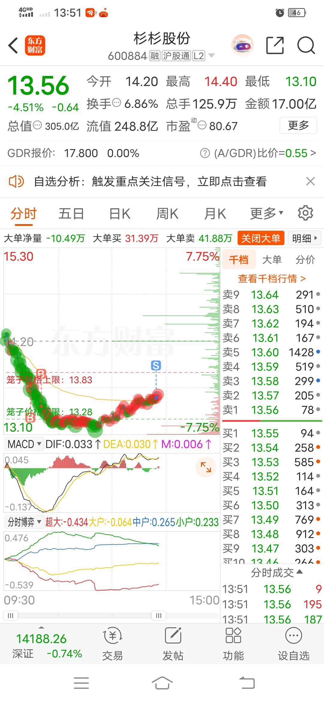 $杉杉股份(SH600884)$ 买了两笔T一笔出去,T了一个多点