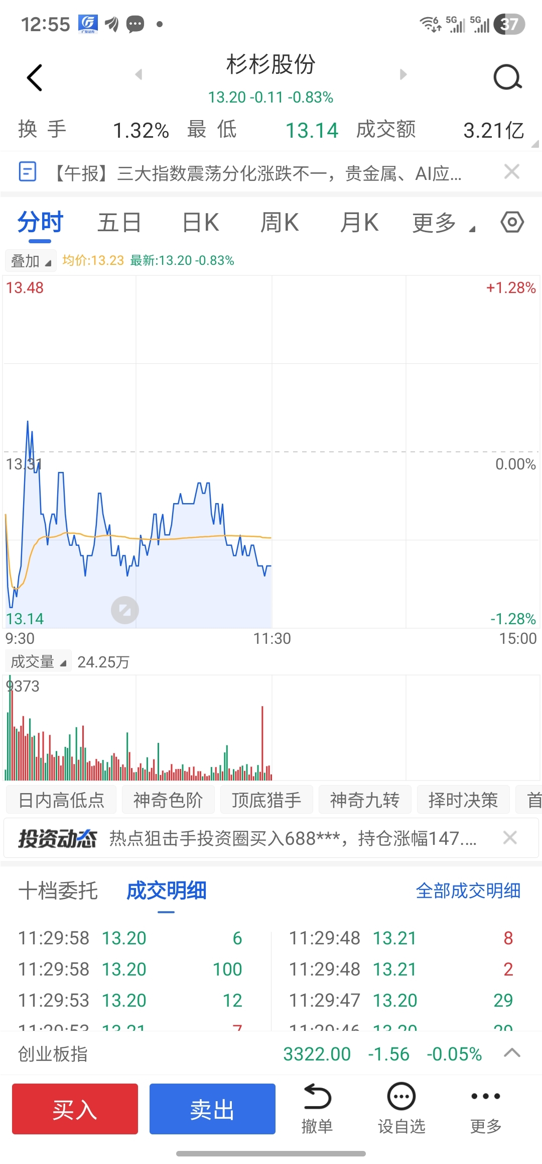 $杉杉股份(SH600884)$ 11:25这个大买单。分时上显示,但是成交量上没有。只有一笔。抛出的单4880。