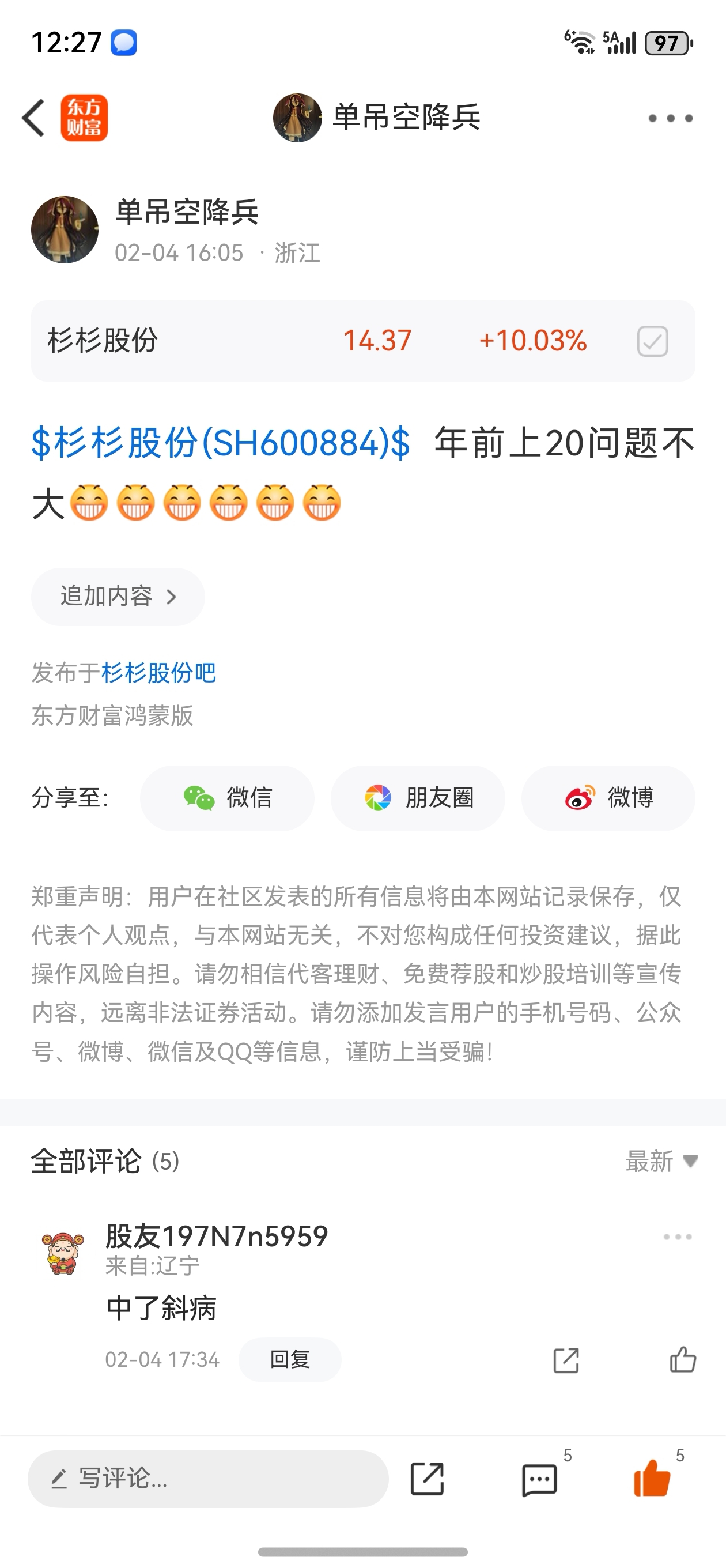 温馨提示: 1.根据《证券法》规定,禁止编造、传播虚假信息或者误导性信息,扰乱证券市场;2.用户在本社区发表的所有资料、言论等仅代表个人观点,与本网站立场无关,不对您构成任何投资建议。用户应基于自己的独立判断,自行决定证券投资并承担相应风险。《东方财富社区管理规定》
