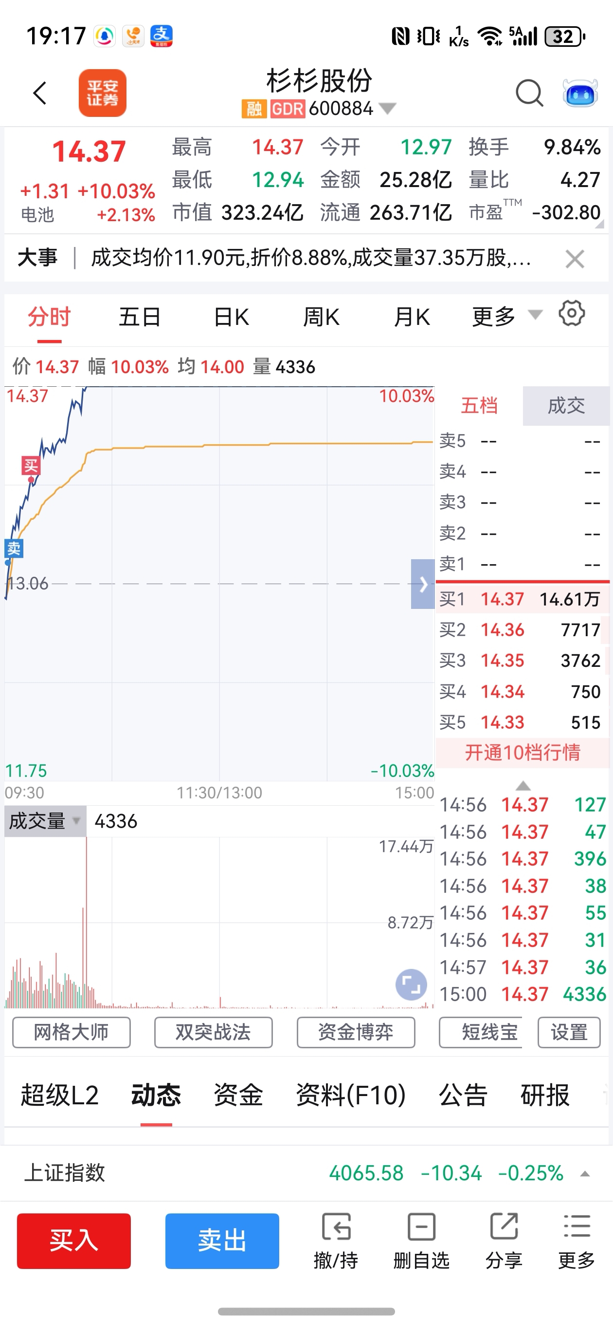 不亏,还好见势不对买回来了。还是飞了5000股!