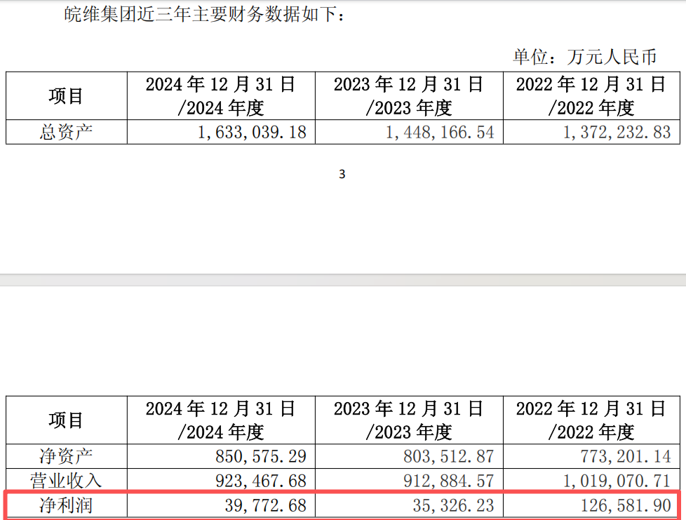 截至2024年末,皖维集团的总资产为163.30亿元,净资产为85.06亿元。2022年至2024年,皖维集团的净利润分别为12.66亿元、3.53亿元、3.98亿元。
